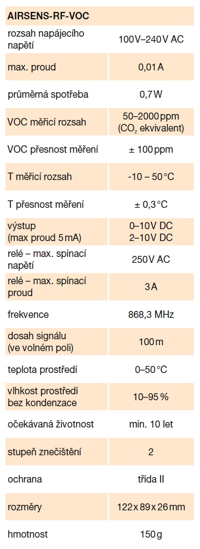 vzdálená komunikace AIRSENS / jednotka | indikace úrovně IAQ (kvality vzduchu) | podrobné technické parametry |
