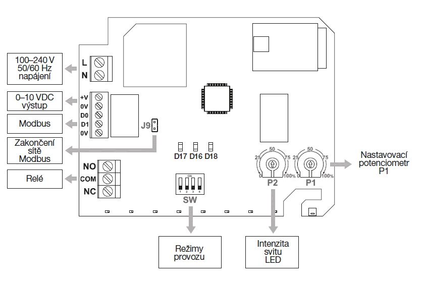 ![]() | Informace Inteligentní samostatná bezdrátová prostorová čidla oxidu uhličitého CO2, volných organických sloučenin VOC a relativní vlhkosti RH. Každé čidlo umožňuje zároveň měření teploty (pouze přes Modbus), RF verze – bezdrátová vysokofrekvenční komunikace mezi čidlem a přijímačem AIRSENS-RF-REC. Každý přijímač může přijímat až 4 signály současně, což umožňuje kontrolovat kvalitu vnitřního vzduchu v různých místnostech. Speciálně vyvinutá pro ovládámí DCV systémů a inteligentních větracích systémů. Jsou vhodná pro použití v kancelářích, učebnách, obchodních centrech, restauracích, domácnostech, fitcentrech a jiných komerčních objektech. Krytí IP30. • snadná instalace, montáž na stěnu • nevyžaduje údržbu během provozu • dlohodobá životnost a stabilita Provoz je možný ve 4 režimech: • přepínací výstupní relé a Modbus* (čtení) • 0–10 V výstup a Modbus* (čtení) • 2–10 V výstup a Modbus* (čtení) • Modbus* plné ovládání * Modbus pouze přes samostatný senzor AIRSENS-RF Inteligentní čidla CO2 a VOC umožňují: • nastavení pracovního bodu ventilátoru / větrací jednotky • indikaci úrovně IAQ (kvality vzduchu) třemi barevnými LED kontrolkami umístěnými na spodní straně čidla zelená – dobrá oranžová – zhoršená červená – špatná | |