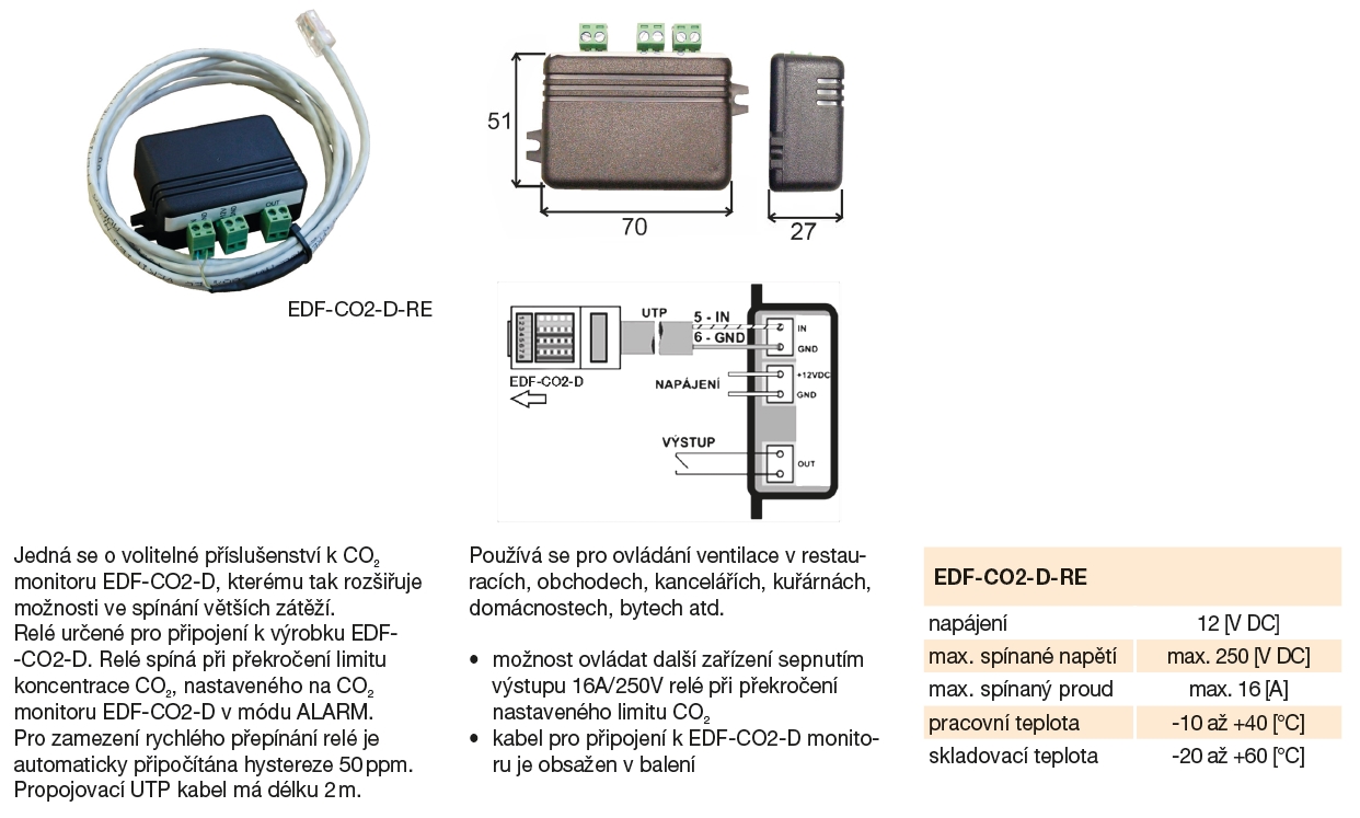 EDF-CO2-D detektor koncentrace CO2Elektrické příslušenství