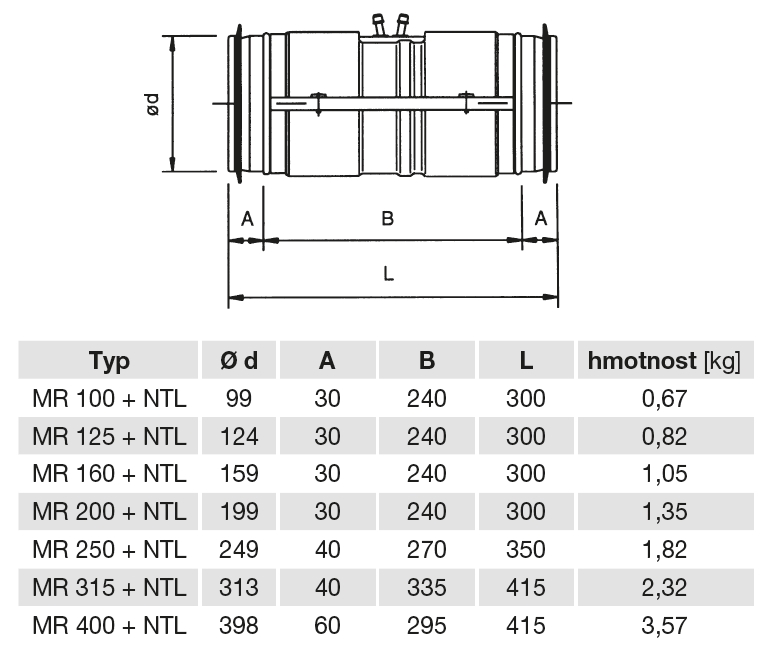 typový klíč pro objednávání | provedení NTL s revizními dvířky | rozsah použití | výpočet průtoku vzduchu |