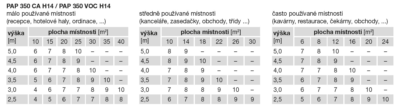 * akustický tlak je měřen ve vzdálenosti 3 m ve volném poli; ** komerční a kancelářské prostory s výškou stropu 3 m