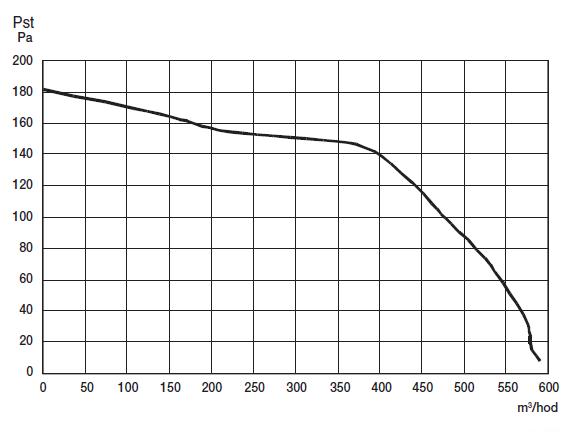 Průtok [0 Pa] [m3/hod] | Proud [A] | Napětí [V] | Max. teplota vzduchu [°C] | Max. teplota okolí [°C] | Potrubí [mm] | Akustický tlak [dB(A)] | Hmotnost [kg] |