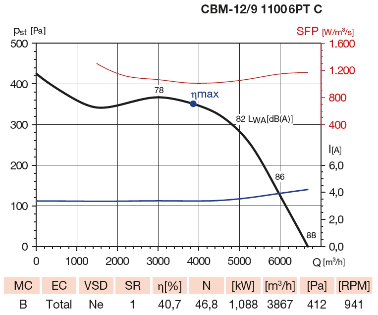 CBM-12/9 1100 6PT C IP44 centrifugal fanSpeciální radiální ventilátory