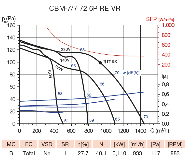CBM-7/7 72W 6P RE VR IP44 centrifugal fanSpeciální radiální ventilátory