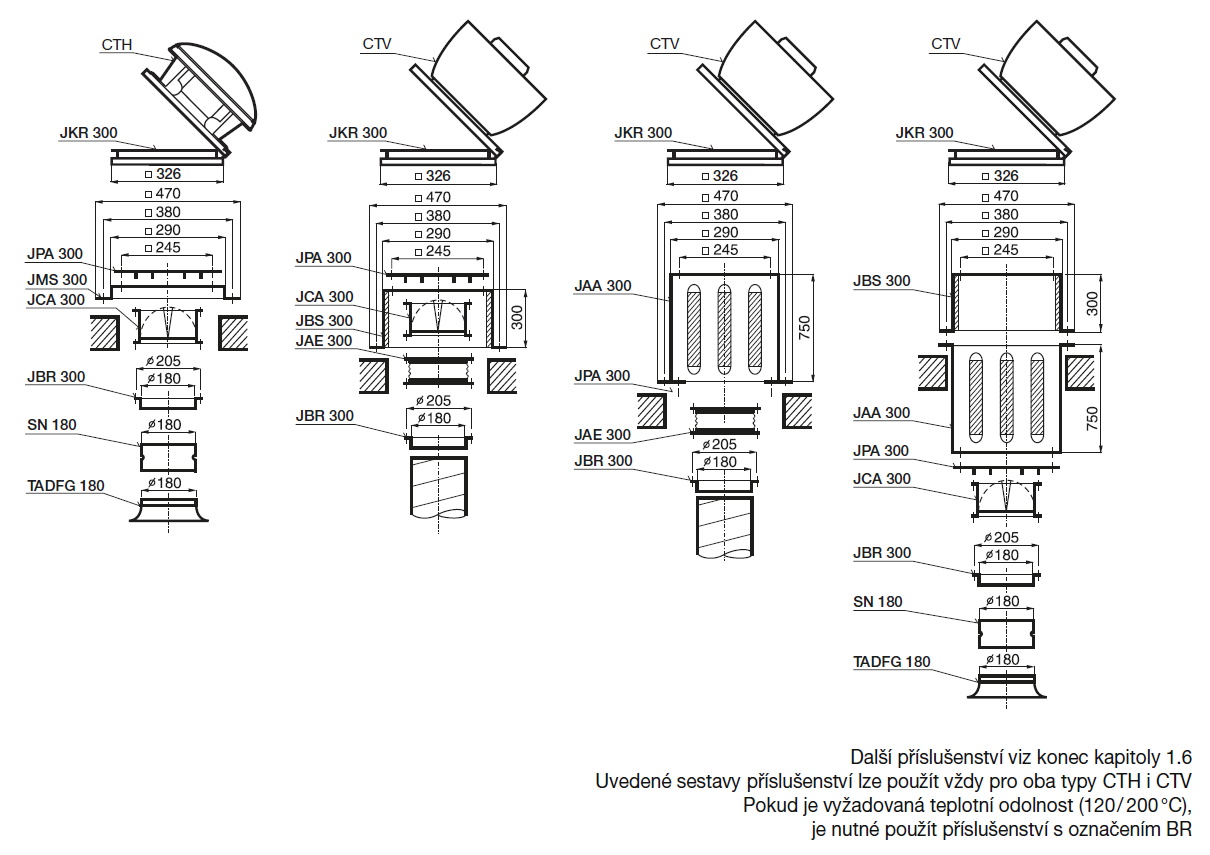 ![]() | Skříň Skříň je konstruována u typu CTH pro horizontální výfuk vzdušiny, u CTV pro vertikální. Podstavec ventilátoru je z ocelového pozinkovaného plechu, galvanicky pokovené jsou i držáky, mřížka a šrouby. Stříška a skříň ventilátoru je z Al plechu. Motor ventilátoru je uložen mimo proud vzdušiny. Ventilační okruh motoru je oddělený, používá vlastní radiální oběžné kolo. Po obvodu stříšky je u ventilátoru CTH ventilační spára, u typu CTV je ventilace motoru vyvedena ze strany skříně. | |