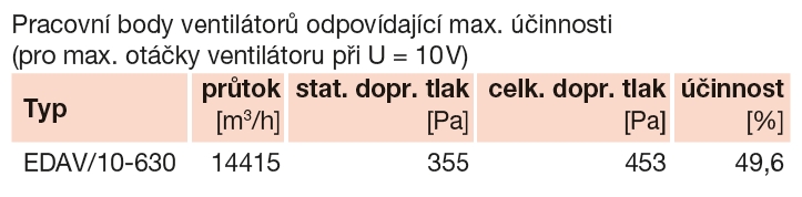 typový klíč pro objednávání | pracovní body ventilátoru odpovídající max. účinnosti |