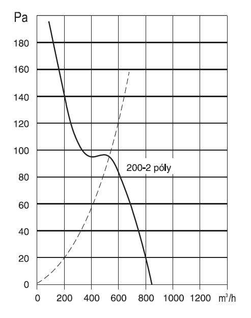![]() | Hluk Hluk emitovaný ventilátorem je uveden v tabulkách, měření je prováděno ve vzdálenosti rovné trojnásobku průměru oběžného kola (minimálně však 1,5 m), na straně sání. | |