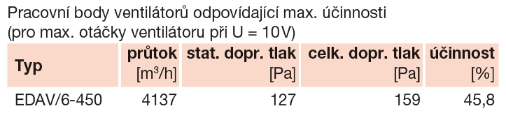 typový klíč pro objednávání | pracovní body ventilátoru odpovídající max. účinnosti |