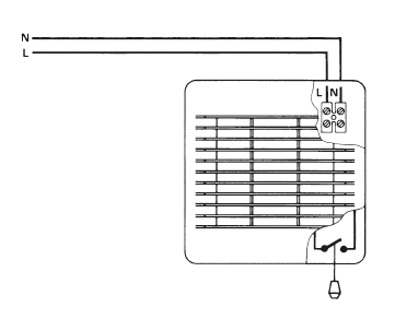 ![]() | Svorkovnice Svorkovnice je přístupná po sejmutí čelní mřížky ventilátoru. Připojení je kabelem pod omítkou nebo po omítce. Svorkovnice obsahuje odlehčovací sponu proti vytržení kabelu. | |