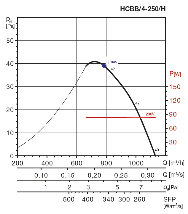 otáčky [min-1] | průtok (0 Pa) [m3/h] | příkon [W] | napětí [V] | proud [A] | max. teplota [°C] | akust. tlak [dB(A)] | hmotnost [kg] | regulátor |