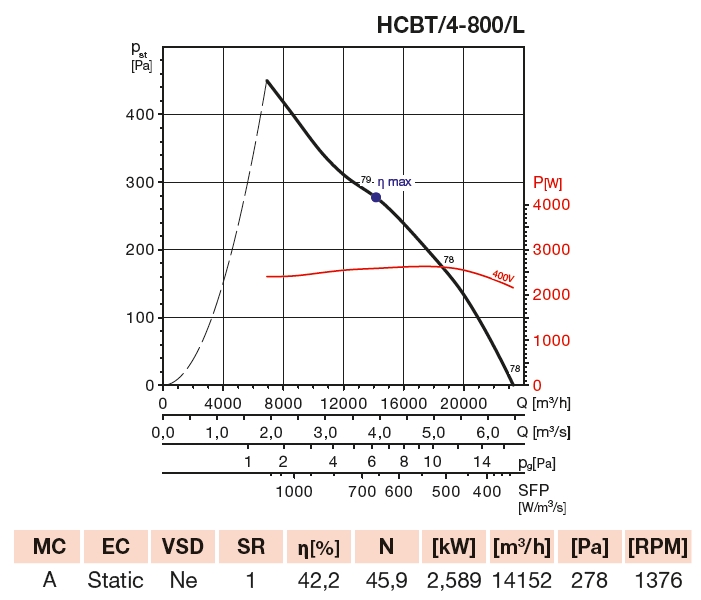 otáčky [min-1] | průtok (0 Pa) [m3/h] | příkon [W] | napětí [V] | proud [A] | max. teplota [°C] | akust. tlak [dB(A)] | hmotnost [kg] | regulátor |