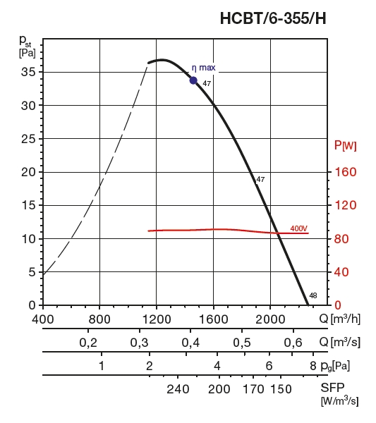 ![]() | Směr otáčení Směr otáčení je možno měnit. Se standardním oběžným kolem klesne při opačném směru otáčení průtok o cca 30%. Průtok vzdušiny je standardně od motoru k oběžnému kolu. | |
