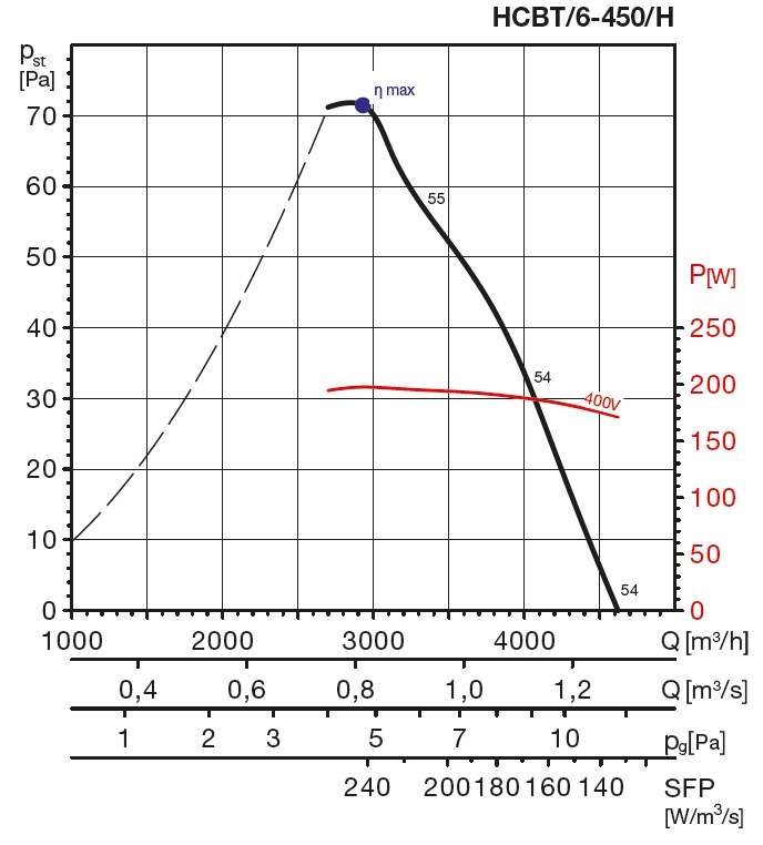 otáčky [min-1] | průtok (0 Pa) [m3/h] | příkon [kW] | napětí [V] | proud [A] | max. teplota [°C] | akustický tlak [dB(A)] | hmotnost [kg] | Ia/In | te [s] |