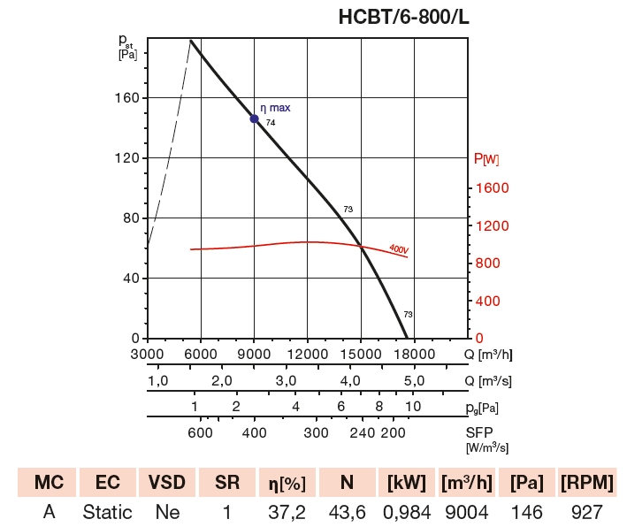 ![]() | Hluk Hluk emitovaný ventilátorem je uveden v tabulkách, měření je prováděno ve vzdálenosti rovné trojnásobku průměru oběžného kola (minimálně však 1,5 m) na straně sání. | |
