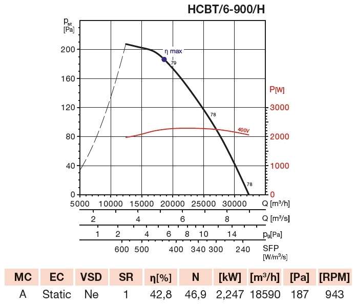 ![]() | Hluk Hluk emitovaný ventilátorem je uveden v tabulkách, měření je prováděno ve vzdálenosti rovné trojnásobku průměru oběžného kola (minimálně však 1,5 m) na straně sání. | |