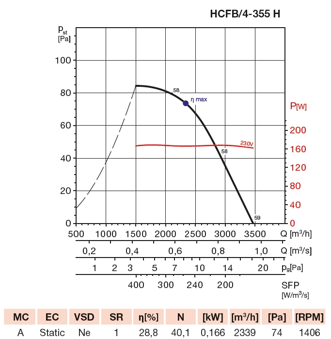 otáčky [min-1] | průtok (0 Pa) [m3/h] | výkon [W] | napětí [V] | proud [A] | max. teplota [°C] | akust. tlak [dB(A)] | hmotnost [kg] | regulátor |