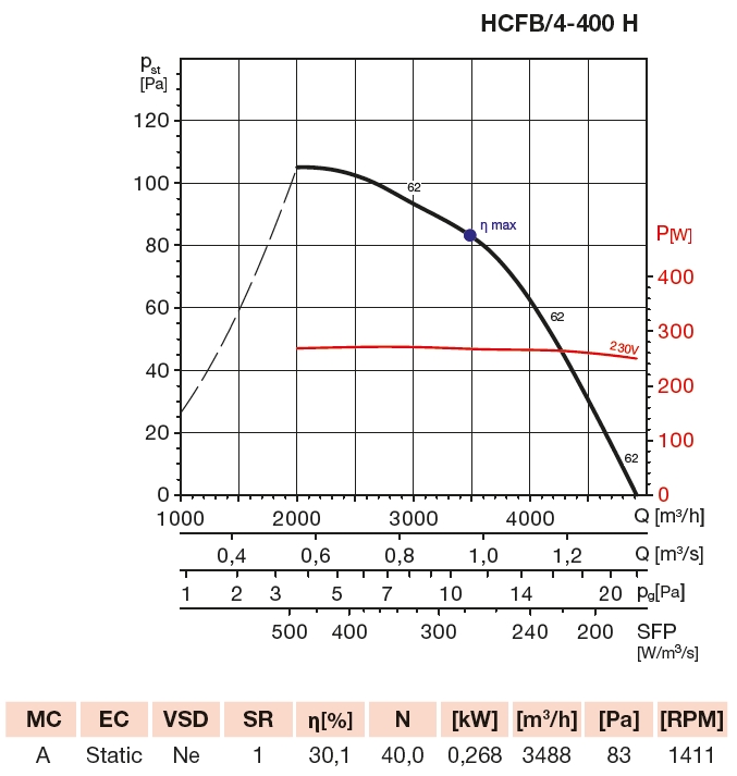 ![]() | Hluk Hluk emitovaný ventilátorem je uveden v tabulkách, měření je prováděno ve vzdálenosti rovné trojnásobku průměru oběžného kola (minimálně však 1,5 m) na straně sání. | |