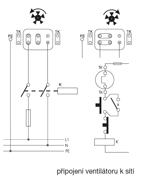 ![]() | Směr otáčení Směr otáčení je možno měnit u jednofázových i třífázových motorů. Se standardním oběžným kolem klesne při opačném smyslu otáčení průtok o cca 30%. U nástěnného provedení je standardně průtok vzdušiny od motoru k oběžnému kolu. | |