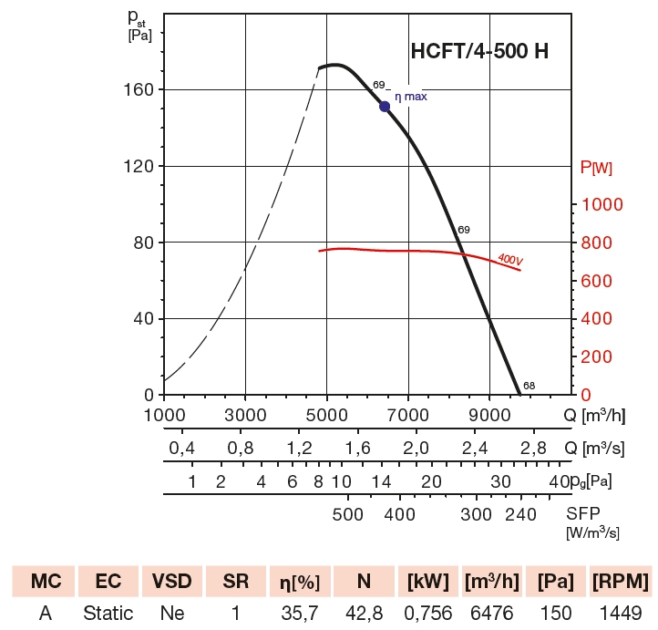 ![]() | Hluk Hluk emitovaný ventilátorem je uveden v tabulkách, měření je prováděno ve vzdálenosti rovné trojnásobku průměru oběžného kola (minimálně však 1,5 m) na straně sání. | |