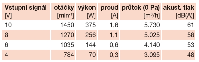 selekční program EASYVENT - podrobnější technické údaje | podrobné technické parametry dle velikosti vstupního signálu |