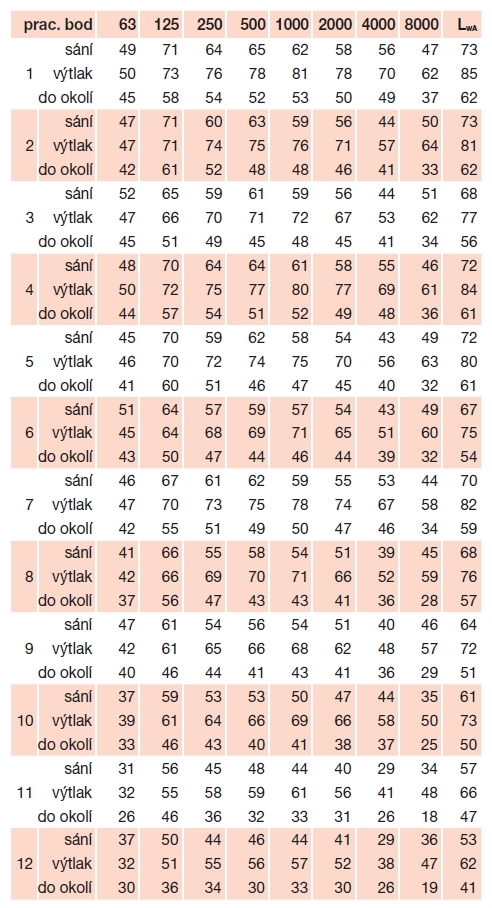 * akustický tlak ve vzdálenosti 1,5 m; sání/výtlak/do okolí