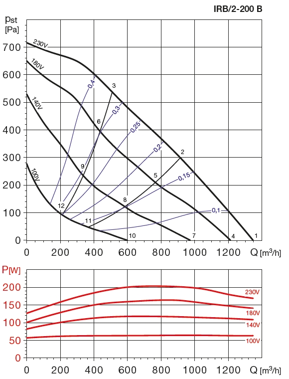 IRB/2-200 B IP44 centrifugal fanRadiální ventilátory do čtyřhranného potrubí