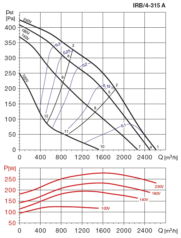 IRB/4-315 A IP44 centrifugal fanRadiální ventilátory do čtyřhranného potrubí
