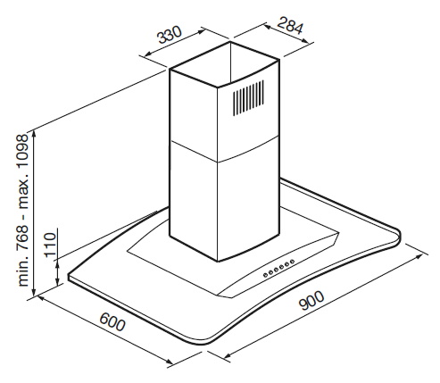 ![]() | Informace • volba tří rychlostí ventilátoru • doběh • osvětlení: halogenová žárovka 4× 20 W • profesionální hliníkový tukový filtr • zpětná klapka na výtlaku • horní vývod pro napojení • recirkulace vzduchu přes 2 uhlíkové filtry (příslušenství) • provedení: nerez / sklo • teleskopický komín • redukce pro výtlačné potrubí DN 150/120 • dostupné velikosti (šířka v mm): 900 | |