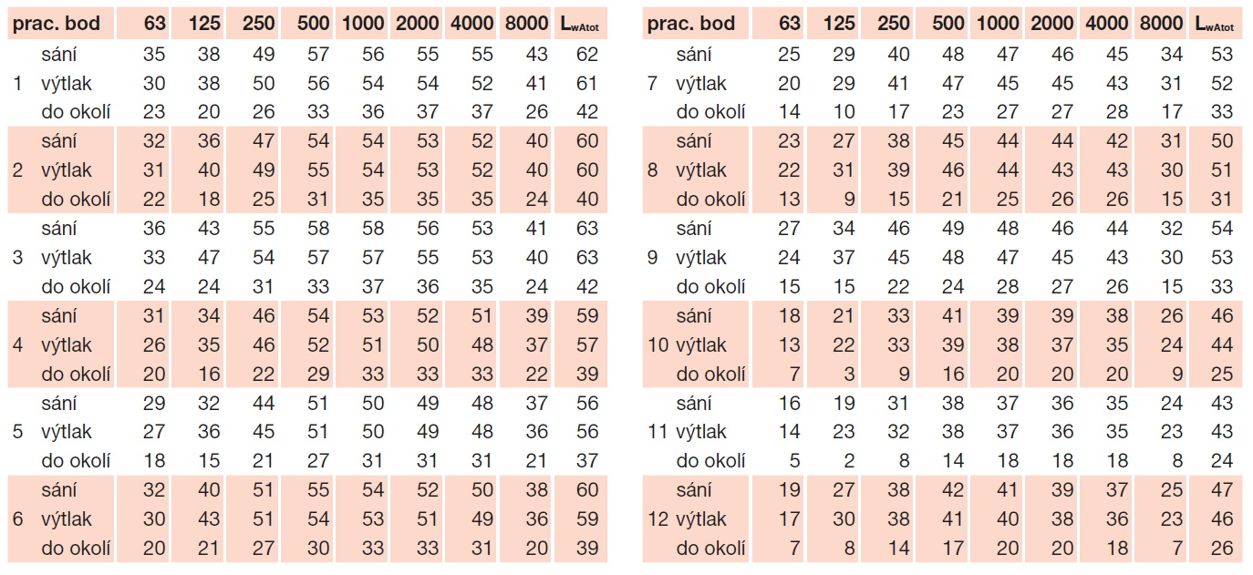 * akustický tlak je měřen ve volném poli ve vzdálenosti 1,5 m v bodech 2, 5, 8 a 11; sání / do okolí / výtlak