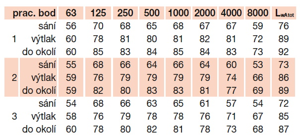* sání/do okolí/výtlak. Akustický tlak měřen ve volném poli ve vzdálenosti 1,5 m.