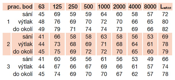 * sání/do okolí/výtlak. Akustický tlak měřen ve volném poli ve vzdálenosti 1,5 m.
