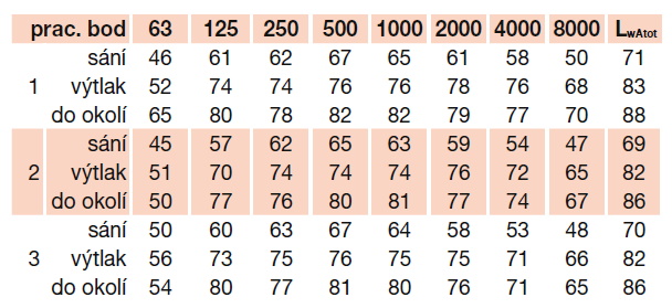 * sání/do okolí/výtlak. Akustický tlak měřen ve volném poli ve vzdálenosti 1,5 m.