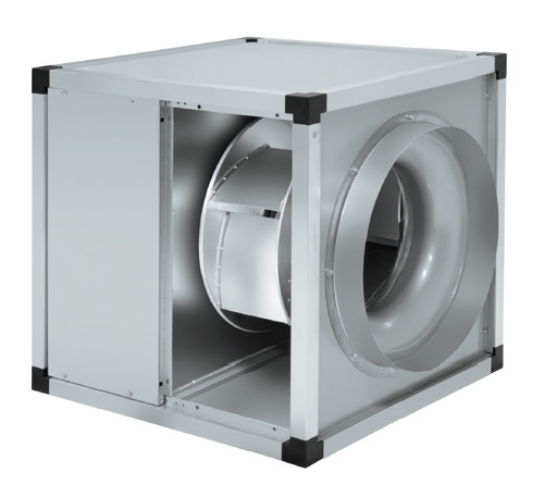 ![]() | Skříň Skříň je z ocelového, galvanicky pozinkovaného plechu, sendvičového provedení. Skříň je uvnitř opatřena vrstvou zvukově izolujícího materiálu. Ventilátor je uložen ve skříni na odpružených profilech, aby se omezil přenos vibrací. Na skříni je osazeno kruhové sací hrdlo pro připojení flexibilních hadic nebo kruhového potrubí. Na výtlaku je čtyřhranný otvor, kam lze připojit redukci na kruhové potrubí, která se dodává samostatně. Skříň obsahuje vanu pro odvod tukového kondenzátu, odvodní hrdlo kondenzátu je nutno namontovat v souladu s polohou ventilátoru a zároveň je nutno zvolit vhodný sklon ventilátoru směrem k hrdlu. | |
