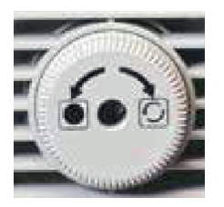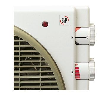 ![]() | Regulace otáček Regulace otáček pomocí dvou otočných přepínačů na boku skříně, kterými se ovládá přepínání režimů (bez ohřevu/s ohřevem), regulace otáček (3 stupně pro chod bez ohřevu vzduchu a 1 stupeň pro chod s ohřevem vzduchu) a nastavitelný termostat. Ventilátor v režimu teplého vzduchu ohřívá vzduch na zhruba 40 °C. Rotace čelní mřížky se zapíná na mřížce. | |