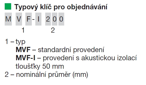 ![]() | Informace Regulátor konstantního průtoku pro kruhové potrubí MVF slouží pro automatickou regulaci průtoku vzduchu pro přívod i odvod. Zajišťuje konstantní hodnotu průtoku vzduchu nezávisle na tlakových podmínkách v potrubní síti. • pro přívod i odvod • jednoduchá konstrukce • dobré regulační vlastnosti • jednoduché zaregulování rozsáhlých zařízení • nízká hladina hluku Konstrukce Regulátor průtoku je vyroben z ocelového galvanicky pozinkovaného plechu. Pracovní teplota -20° až +70 °C. Regulační ústrojí je pevně nastaveno na požadovaný průtok. Při zvětšení průtoku vzduchu vzroste rozdíl tlaků v regulátoru a dojde k přivření klapky a tím ke zmenšení průtočného průřezu ventilu. Tím opět poklesne průtok na původní hodnotu. Upozornění Při projektování a montáži je nutno dbát na to, aby tlak v potrubí nepčekročil 1000 Pa a minimální tlaková ztráta odpovídala ztrátě uvedené v grafu. V opačném případě regulátor neplní svoji funkci a může být zdrojem hluku. | |