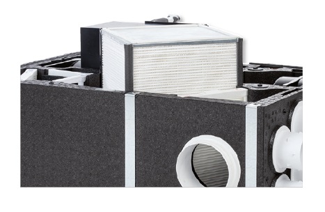 ![]() | Filtr Na sání čerstvého vzduchu je standardně deskový filtr M5 (ISO ePM10 50%), na sání odpadního vzduchu je deskový filtr G4 (ISO coarse 65%). | |