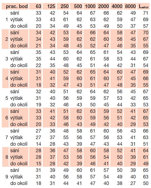 * akustický tlak měřen ve vzdálenosti 1,5 m ve volném poli při max. průtoku vzduchu