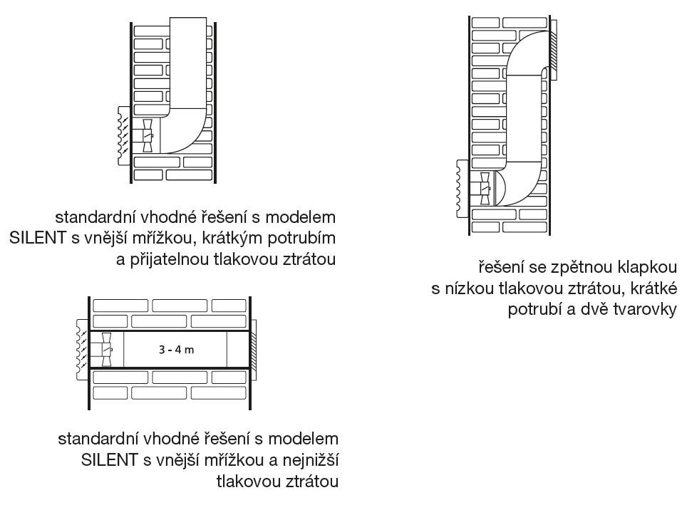 ![]() | Pokyny Ventilátory jsou vhodné pro krátké vzduchovody s nízkou tlakovou ztrátou nebo k odvětrání přímo přes stěnu. Variantu R je možné spouštět tlačítkem. | |