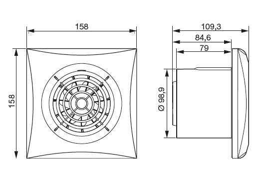 ![]() | Skříň Skříň je z nárazuvzdorného plastu, barva je bílá nebo stříbrná (viz varianty). Skříň je určena k montáži na stěnu. Ventilátory obsahují zpětnou klapku, jejíž řešení je patentováno. | |