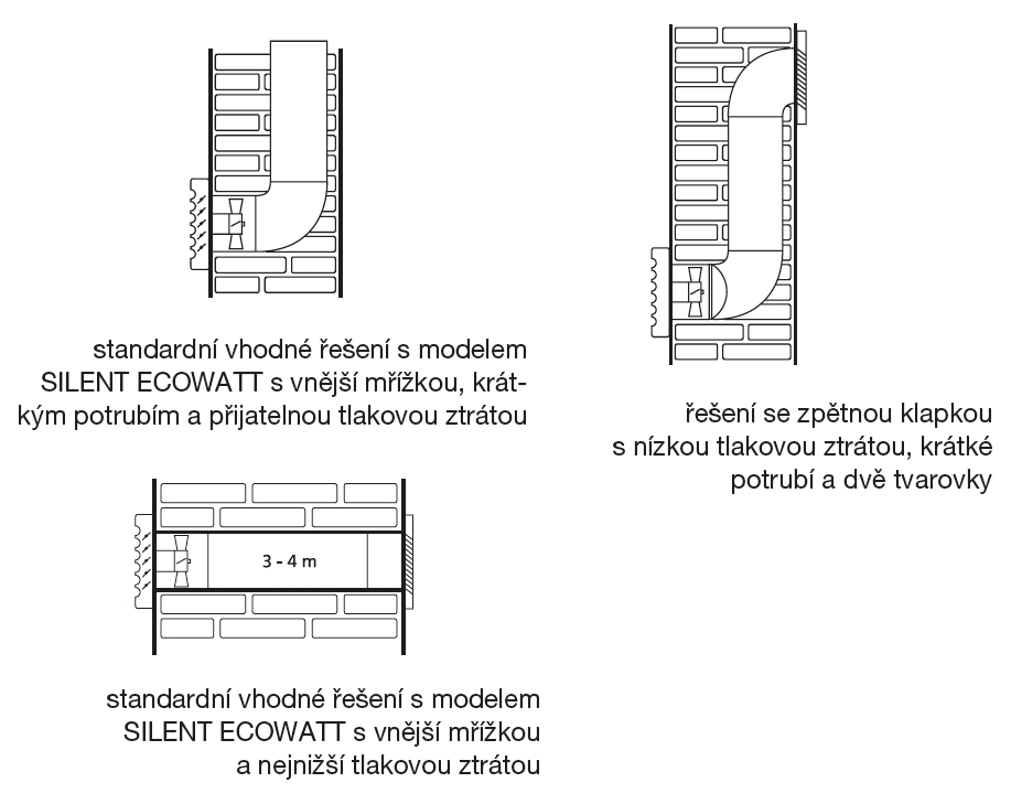 ![]() | Pokyny Ventilátory jsou vhodné pro krátké vzduchovody s nízkou tlakovou ztrátou nebo k odvětrání přímo přes stěnu. Variantu CRZ je možné spouštět tlačítkem. | |