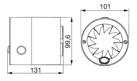 ![]() | Montáž Lze montovat v libovolné poloze, ale tak aby v nečinnosti ventilátoru byla mechanická klapka uzavřena. Vsouvá se do stěny nebo potrubí, případně se pomocí manžety PIE 100/120 přichytí na stěnu či strop. | |