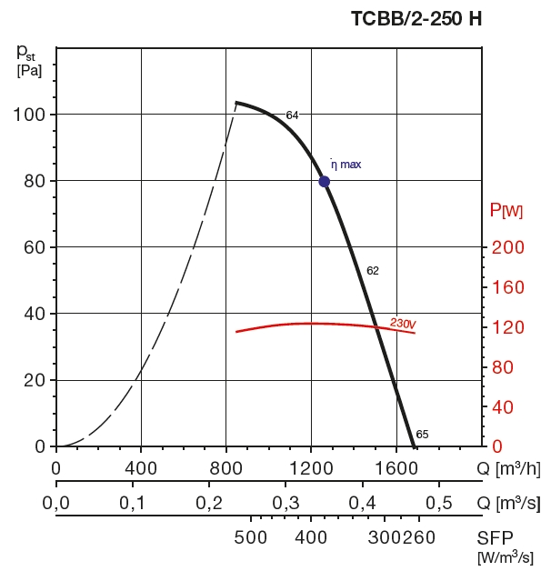 otáčky [m-1] | průtok (0 Pa) [m3/h] | výkon [W] | napětí [V] | proud [A] | max. teplota [°C] | akustický tlak* [dB(A)] | hmotnost [kg] | regulátor |
