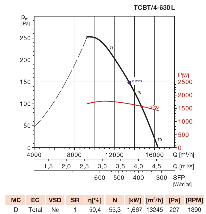 TCBT/4-630 L 230/400 V IP65 axial fanAxiální ventilátory IP65