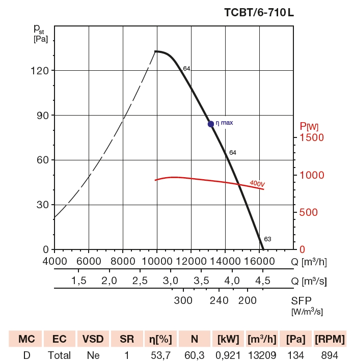 otáčky [m-1] | průtok (0 Pa) [m3/h] | výkon [W] | napětí [V] | proud [A] | max. teplota [°C] | akustický tlak* [dB(A)] | hmotnost [kg] | regulátor |