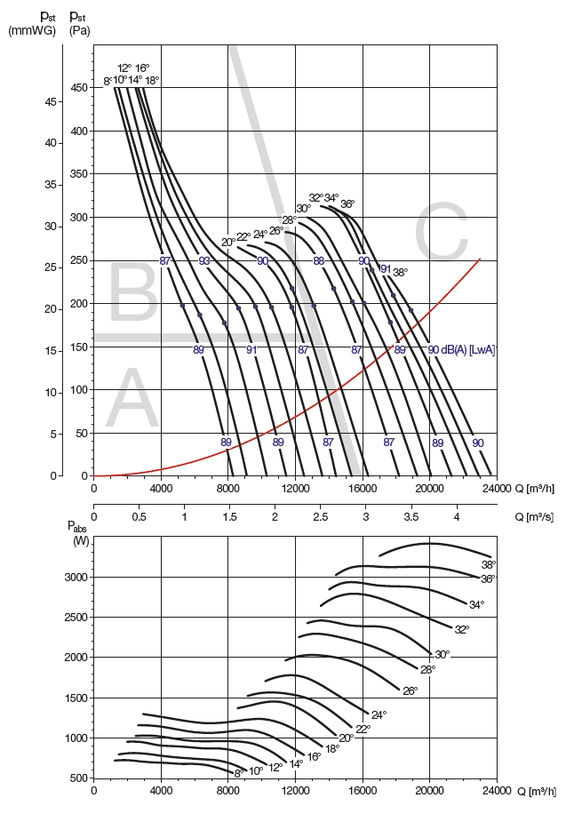 ![]() | Hluk Hluk emitovaný ventilátorem je uveden v charakteristikách ventilátoru. Odečtením korekcí (v tabulce u jednotlivých charakteristik) od hodnoty akustického výkonu LwAtot [dB(A)] uvedené ve výkonových charakteristikách ventilátoru v jednotlivých zónách se získá hodnota akustického výkonu LwA [dB(A)] ve středu oktávových pásem. | |