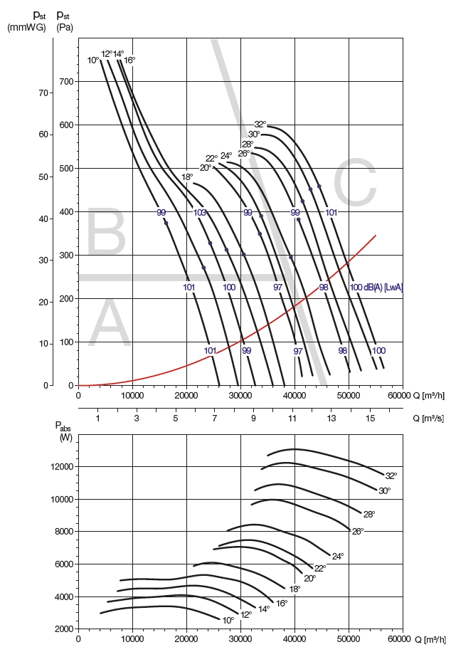 ![]() | Hluk Hluk emitovaný ventilátorem je uveden v charakteristikách ventilátoru. Odečtením korekcí (v tabulce u jednotlivých charakteristik) od hodnoty akustického výkonu LwAtot [dB(A)] uvedené ve výkonových charakteristikách ventilátoru v jednotlivých zónách se získá hodnota akustického výkonu LwA [dB(A)] ve středu oktávových pásem. | |