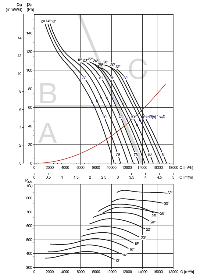 ![]() | Hluk Hluk emitovaný ventilátorem je uveden v charakteristikách ventilátoru. Odečtením korekcí (v tabulce u jednotlivých charakteristik) od hodnoty akustického výkonu LwAtot [dB(A)] uvedené ve výkonových charakteristikách ventilátoru v jednotlivých zónách se získá hodnota akustického výkonu LwA [dB(A)] ve středu oktávových pásem. | |