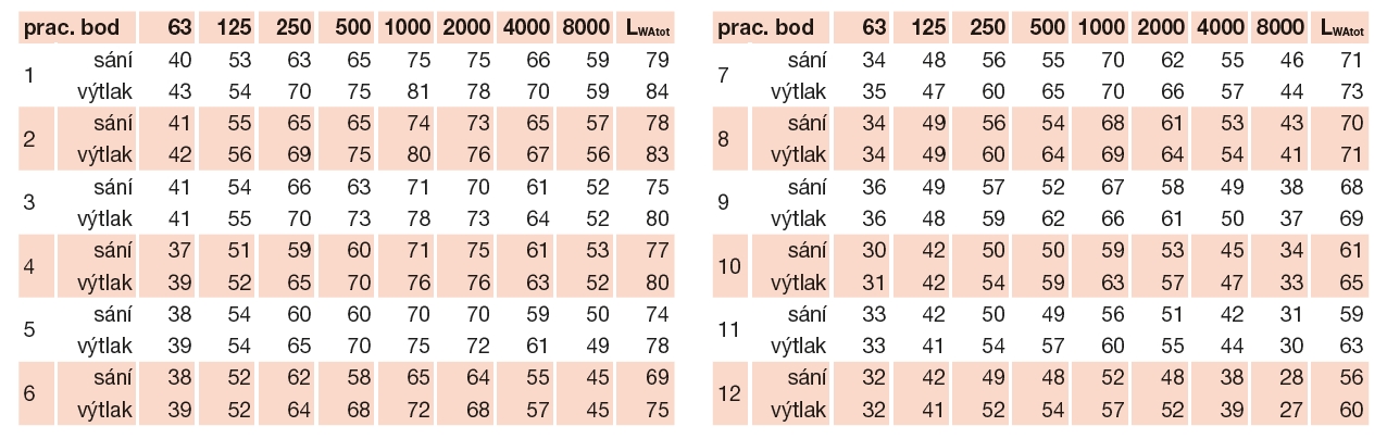 * sání/výtlak. Akustický tlak je měřen ve vzdálenosti 4 m v bodech 2, 5, 8 a 11 na výkonové křivce.