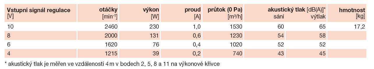 otáčky [min-1] | výkon [W] | napětí [V] | proud [A] | průtok (0 Pa) [m3/h] | akust. tlak* [dB(A)] | hmotnost [kg] | regulace |