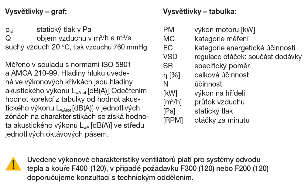 ![]() | Pokyny Ventilátory jsou vhodné pro vzduchotechnické aplikace a s výhodou se uplatní tam, kde požadujeme od ventilátorů vysoký průtok a zároveň je požadavek funkce ventilátoru pro odvod tepla a kouře (OTK). | |